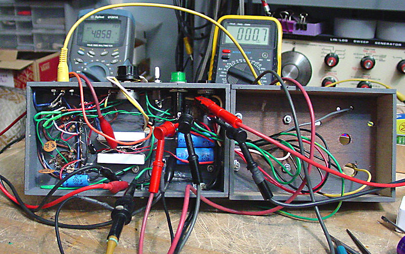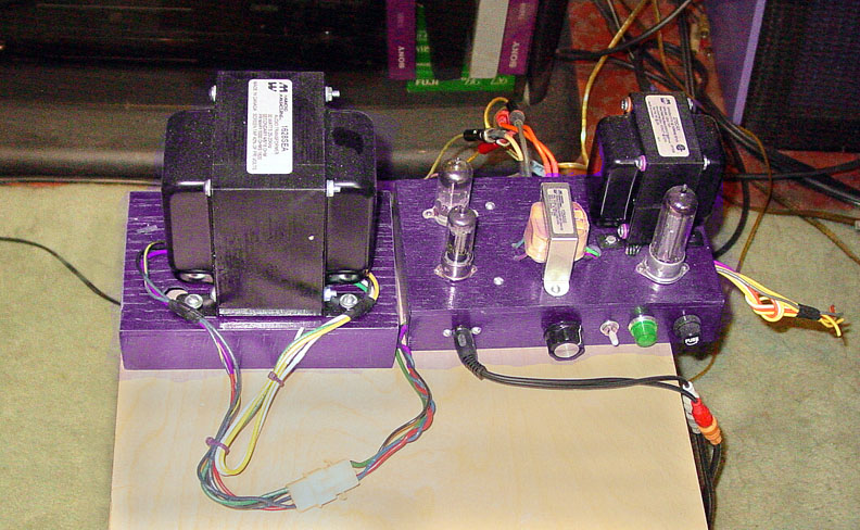 The extra chassis mentioned earlier is now holding the output transformer. The smaller output transformer has been disconnected. |