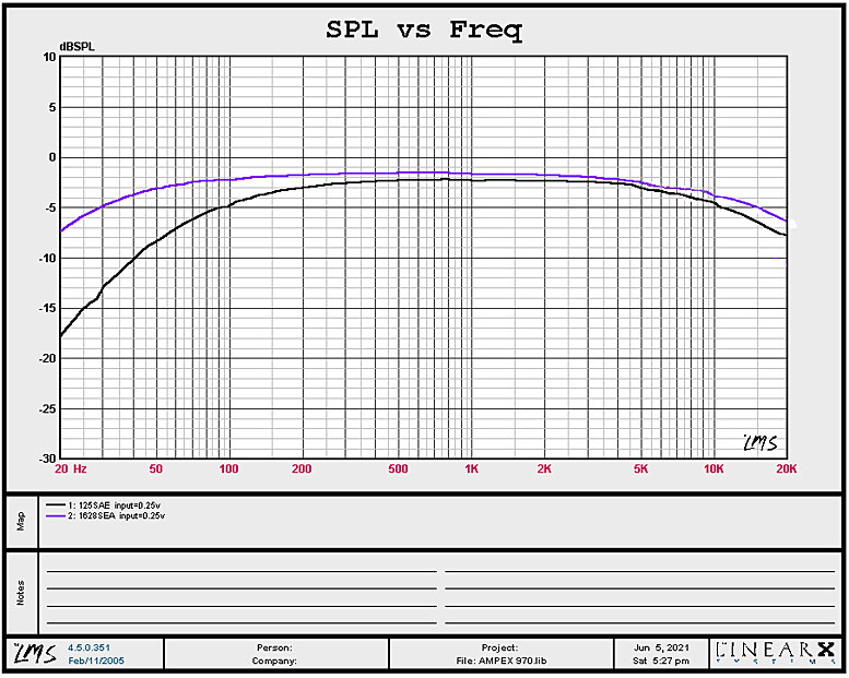 The before (black) and after (purple) response curves into an 8W resistive load. The power transfer was just under 1 watt and the same for both tests. The difference at the high end wasn't that prominent but the improvement in the bass was quite impressive. The speakers used for this are a pair of Klipsch type corner horns, wired in parallel and both driven by this amp. Those horns can be seen HERE |