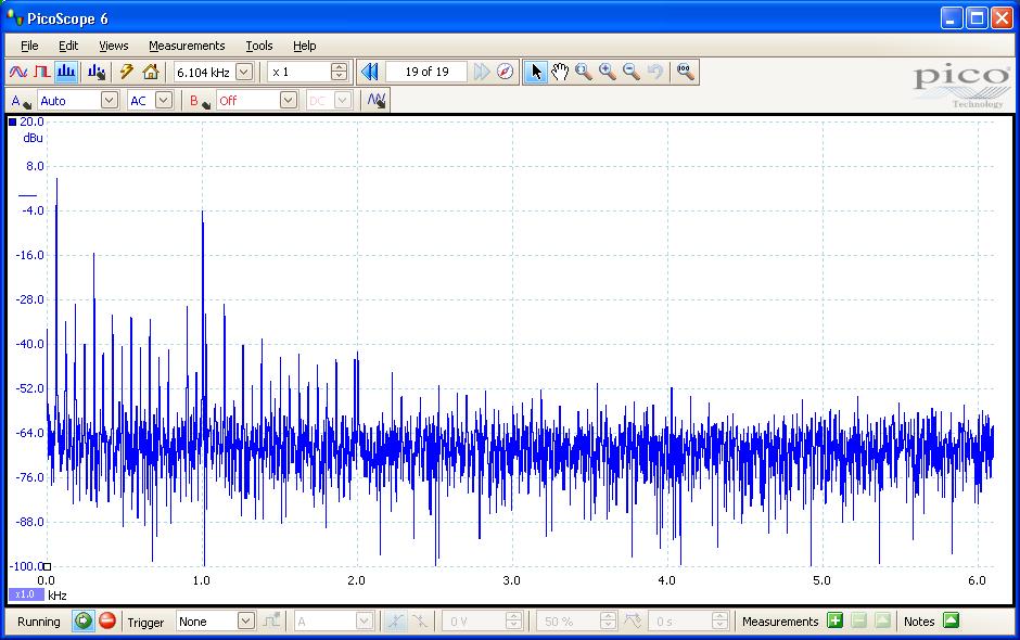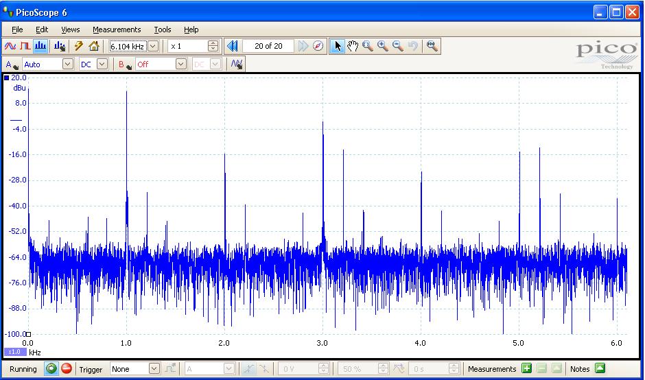 These spectrograms were generated with about 1 watt to the speakers, generating an ear splitting 98 dB at 1000hz. Fortunately, it took but a couple of seconds to capture each of these spectrograms. At 100hz, the SPL was some 10dB lower Comparison of the first pair shows that at 100 hz, the two speakers are very similar. This may be due to the cone moving in unison, like a piston, little to no cone break-up. |