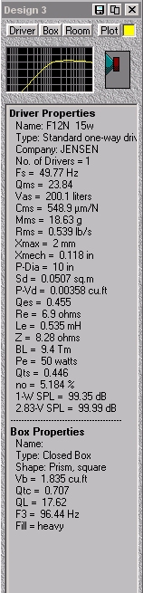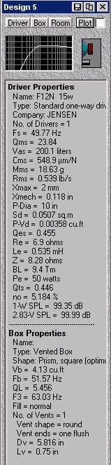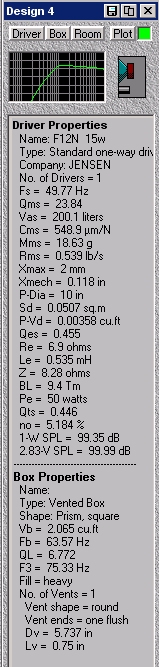 Despite some differences in these parameters, the greatest being the voice coil inductance, Le, the two are very much identical. The higher inductance given by Jensen accounts for the steeper roll-off at high frequencies. The C12N doesn't perform well in a vented box until the volume approaches 8 cubic feet. In a smaller vented box of about 4 to 5 cubic feet, it'll probably sound much like a juke box, ideal for one who wants to duplicate that sound. There's a 3 dB rise between 70hz and 150hz. Based on that, only the closed box designs were considered. The F12N gives a lower bass response due to the lower Fs which, in turn, is probably due to some 40 or more years of use. Keep in mind, the C12N is designed for guitar while the F12N was primarily used in electric organs. The F12N will perform quite well in a vented box of very reasonable volume. This, again, is based on their being over 40 years old. How one would perform 40 years ago is anyone's guess. Only a time machine would help in that determination. Anyone got a De Lorean equipped with a flux capacitor? |