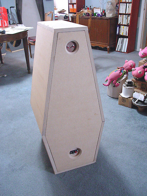 A system designed and built in early 2019 which was given away to a friend who really liked them. Two notch filters were added to compensate for his room acoustics which, according to calculations, would have had a severe hump in the bass response of the order of about 10dB.. Given his musical preferences, that eventually proved to be unnecessary but the filters were left in anyway.
