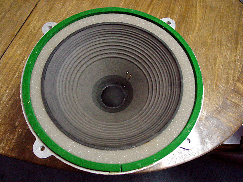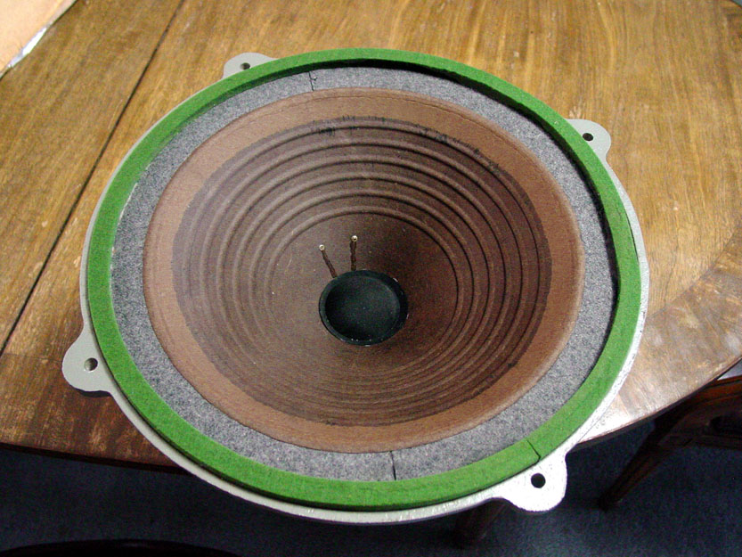 This one is all original, the felt (cloth) annulus is long lasting as long as the moths or crickets don't get at it.. The yellow upper marking on the cone dates it to 4/'55. Below that appears to be the fundamental resonance, 31 hz.