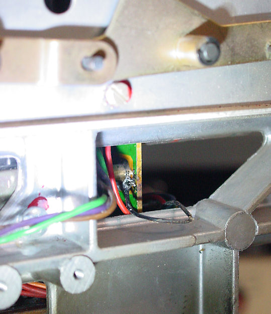 A note on removing the power supply. There's a very thin black wire connected to the low voltage power supply near the lower left mounting stud to a lone foil on the board. I've seen some of these wires broken and it took a while to figure out where that thin wire went as it broke on the foil. Inspection of another machine solved that. A piccy of that wire's location is next. |