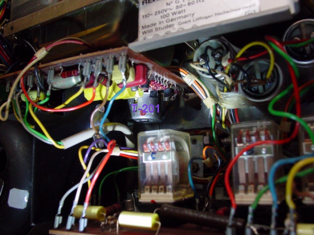 and Gurus. Some are recorder technicians who have repair shops. Before starting, you should have a service manual. They can be found on eBay but make sure you get the seller to show the speed control schematic, diagram 10, as there are two configurations (see photo). Another source is the Studer archive. LINK: ftp://ftp.studer.ch/Public/Products/Revox/ These pdf files can be downloaded and printed, no charge and no additional fee if you download two or more. The two speed control configurations are described here. #1.077.724/729 This has the IC controller, NE555V (NTE955M) which is just a 555 timer and easily obtained for very little if need be. #1.077.725 has the cylindrical adjustment coil, T201, (see photo) T-201 is labeled in purple.