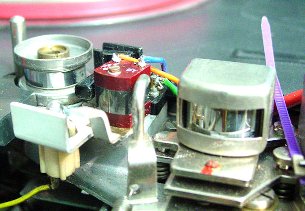 When setting the record and playback RF traps, variations of 5:1 between left & right channels can be noticed. From that which I've seen in Tapheads and AudioKarma, this is acceptable. Of the 6 machines I have, only one comes close to being equal on both channels. Just set for minimum. I've found no one in those forums who had an explanation or fix for this. I've replaced C517 & C808 and checked L--501 & L-801 to no avail. I don't know if the adjusting cores could be at fault but I've even inserted steel screws into the coils with no luck. One machine works well with one core removed. Go figure. A worthwhile note. Using an ordinary multimeter may not work if its low range on AC volts isn't sensitive enough. These voltages are less than 350 millivolts and the minimum can be as low as 20 millivolts. While no DMM ordinary will give accurate results at 120khz, actual voltages are not required, only a minimum. So, if your meter will read as low as 20 millivolts AC, you should be ok there. With a DMM, give the meter time to stabilize after turning the core. A scope works best as the change is instantaneous. There are some notes on the heads and bias traps at the bottom of this page in the section on The Heads