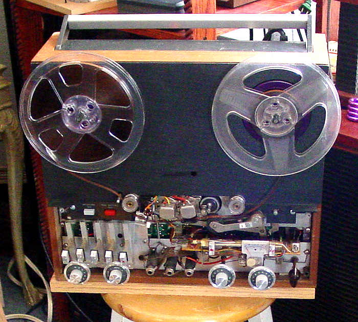 I found this jewel on eBay on May 9, 2011. It came from Alberta, Canada. When I first saw it, the auction was almost over and no bidders. The starting bid was $100 so I tossed in a bid of $120, just to get instant notification of any higher bids. I was prepared to go higher as I was looking for a recorder rather than a deck. No bids were placed so I got it for $100 plus $60 for shipping. It was rated high by the seller but I took that with the proverbial grain of salt. I was very much surprised upon receipt of the machine. First, it works, even the brakes. All lamps work but only one of the VU meters. Turned out that C507 was shorted; both were replaced on each board. The cabinet is pristine and when I removed the cabinet, no dirt or dead bugs inside; it looked new. The heads show only a shiny area where contacted by tape, no actual wear. The seller was contacted shortly after it arrived and I was told that his dad bought it in the 60's and hardly used it. It was stored most of its life in a closet in the house; his dad was a traveling salesman. It never saw a repair shop so all internal adjustments are original, hence none made by me. After telling him a little about my "thing" for the A77, he said he was happy knowing it found a good home. It lay around my collection for years and I played it a few times, showing it to a few friends. It was finally placed on the bench for investigation due to its age and originality. By then, I was very well aware of those Rifa caps and wasn't about to push my luck any further than I already had. Tests were performed but again, no adjustments made as everything was in order with exception of the speed which was a little slow. So, I had to remove the power supply as trying to get at those two adjustments is more difficult that removing the power supply. Besides, there are old electrolytics that HAD to be checked. Q209 is the old TIP-27 in a TO-220 case. Despite that the speed was easily adjusted correct, C213, a Rifa and C212 were replaced, the latter checked as questionable and due to the difficulty of access, it was replaced. In the end, a few tantalums and the speaker amplifiers' electrolytics were replaced which reduced ripple and hum and ALL Rifa caps replaced. This machine has 4 such caps on the tape drive control board; later models have only 3. After restoring 5 units, I was familiar with which tantalums to look at. The heads were in good alignment and not touched as the red seal glue (DFW - Don't F+++ With) was still intact. |
