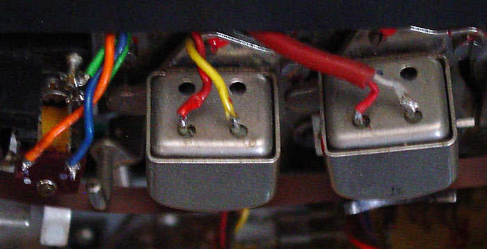 Use a china marker to coat the head surface. Play an old tape for about 10 minutes and then inspect the wear mark in the marker that was made by the tape. If it's the same distance on each side of the gap, you're all set to go. Remove the head block (3 screws), tighten the head screw(s), clean the heads with alcohol and re-install the block. Be sure to use the same tension on the screws through each change of the head block to the frame If the side spacing is uneven, remark the head and rotate in the appropriate direction and repeat the above as many times as it takes to get the wear mark even about the gap. Once achieved, carefully remove the whole block and tighten the screw(s). This and head height is best done before soldering the wires to the heads. I pluralized screw as some heads have two screws on the bottom and these may automatically set wrap. I have not seen such heads but they are listed in the service manual parts list.. Now you're set to do azimuth, assuming the machine records, play back and runs. If starting with a machine recently purchased, all functions should be repaired prior to replacing the heads. Heads can be checked for assumed operability with an ohmmeter. Remove wires HB1 thru HB7 from the left side of the VU meter board and remove both reproduce (playback) amplifiers. This will isolate all the heads from the other circuits. The wires attached to the heads can stay attached. Erase = 0.6W Record = 15W Play = 96W (each channel and +/- 10%) I did find one machine, a high speed half track with playback heads that measured 157W on each track and it works. I was unable to find any info as to why.