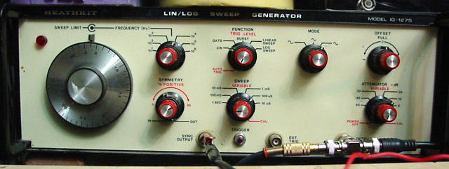 Linear/Logarithmic Sweep Generator This thing has been in my possession since I bought it way back in the late seventies and it still works. This unit, although not good enough to measure THD of an amplifier, has an advantage over the FG-502 in that its output is variable from 1mV to 7V (rms) into >50W, whereas the FG-502's range is 0.354v to 3.54v. This is useful when doing the record head azimuth adjustment which requires 3mV applied to the input. There are several Heathkit pieces here and all working but have been replaced by more versatile equipment. |