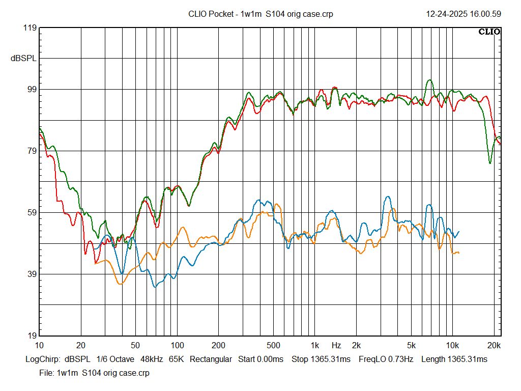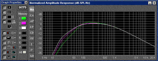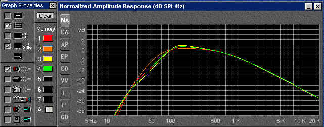 After this project ended, and successfully if I may add, it was decided to further check the drivers, especially the S-104 and the S-105 units. The negligible difference between the S-104 and the S-105 units leads one to wonder if the change was purely for marketing. In any case, these little fellas sounded exceptionally nice despite their age and despite the not so favourable test results. This brings to mind the following, copied from one of my much earlier web pages. I once read an article in a loudspeaker journal about a Japanese company's attempt at designing a loudspeaker system. They had all the latest technology at their disposal and a team of top notch engineers. After all the equations were digested by their computer, the computer designed the system. It was built and tested and passed with flying colours. Unfortunately, it didn't sound too good. After several more trips back to the drawing boards the newer designs didn't sound much better either. Consultation was sought of a noteworthy foreign loudspeaker guru, an American in San Francisco, and this individual pointed out the flaws in their design. It seems the Japanese designers relied on pure theory, but one thing they didn't consider was that their computer and test equipment didn't have ears. There was also a company's amplifiers that were tested by a well known audio lab sometime in the late eighties. The folks testing the amps stated that had they relied solely on the test results, the amps would have been considered unworthy. However, they decided to give the amps an audition. The results were nothing less than astounding. Their test equipment didn't have ears either. Q.E.D. All the figures are linked to a larger image