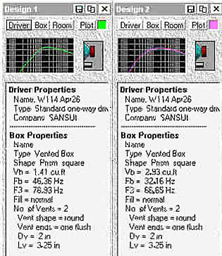 Increasing the cabinet volume to 3ft^3 may or may not be worth the effort. It does improve the bass output but at the cost of diaphragm excursion and low frequency power handling, both of which can be controlled by avoiding attempts to obtain rock concert levels. The white trace is that of optimum enclosure volume which has its price as will be shown later. In short, there is no free lunch.