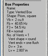 This shows the cabinet specs for 1.4ft^3 and 2.9ft^3. the original vents were used due to possible limited baffle space for larger ones. This is covered later. |