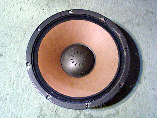 The woofer is a W-114 and measures 14" total OD the cone is probably 12" , 5,5 ohms . 40 watts